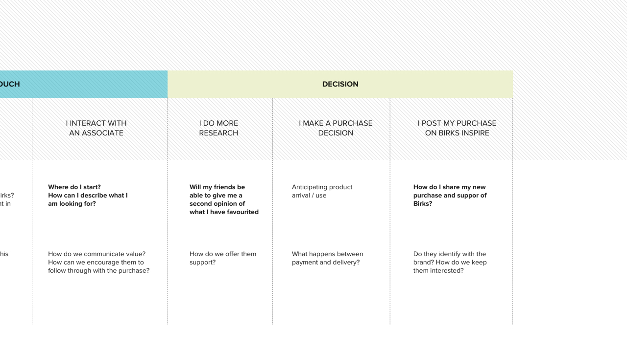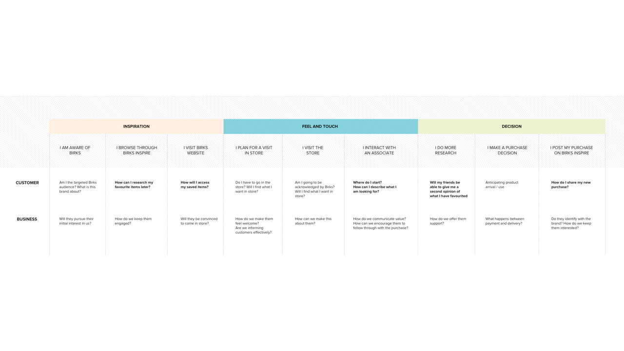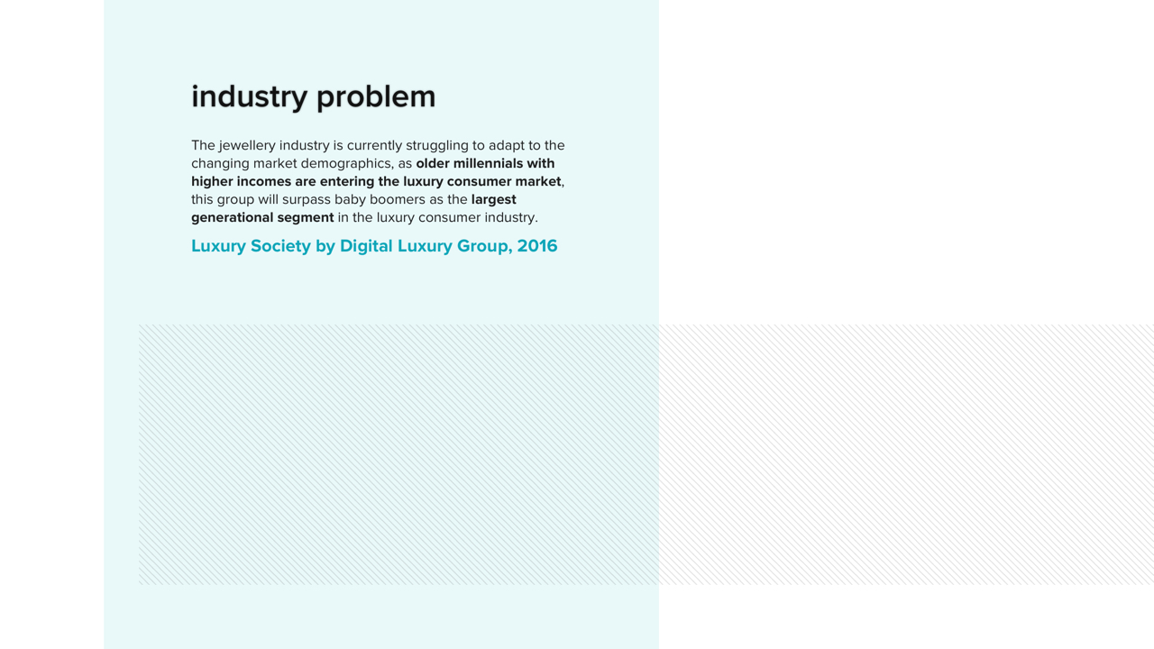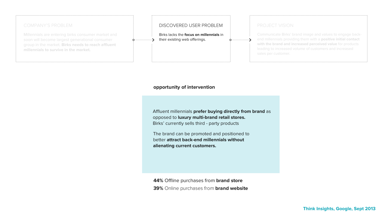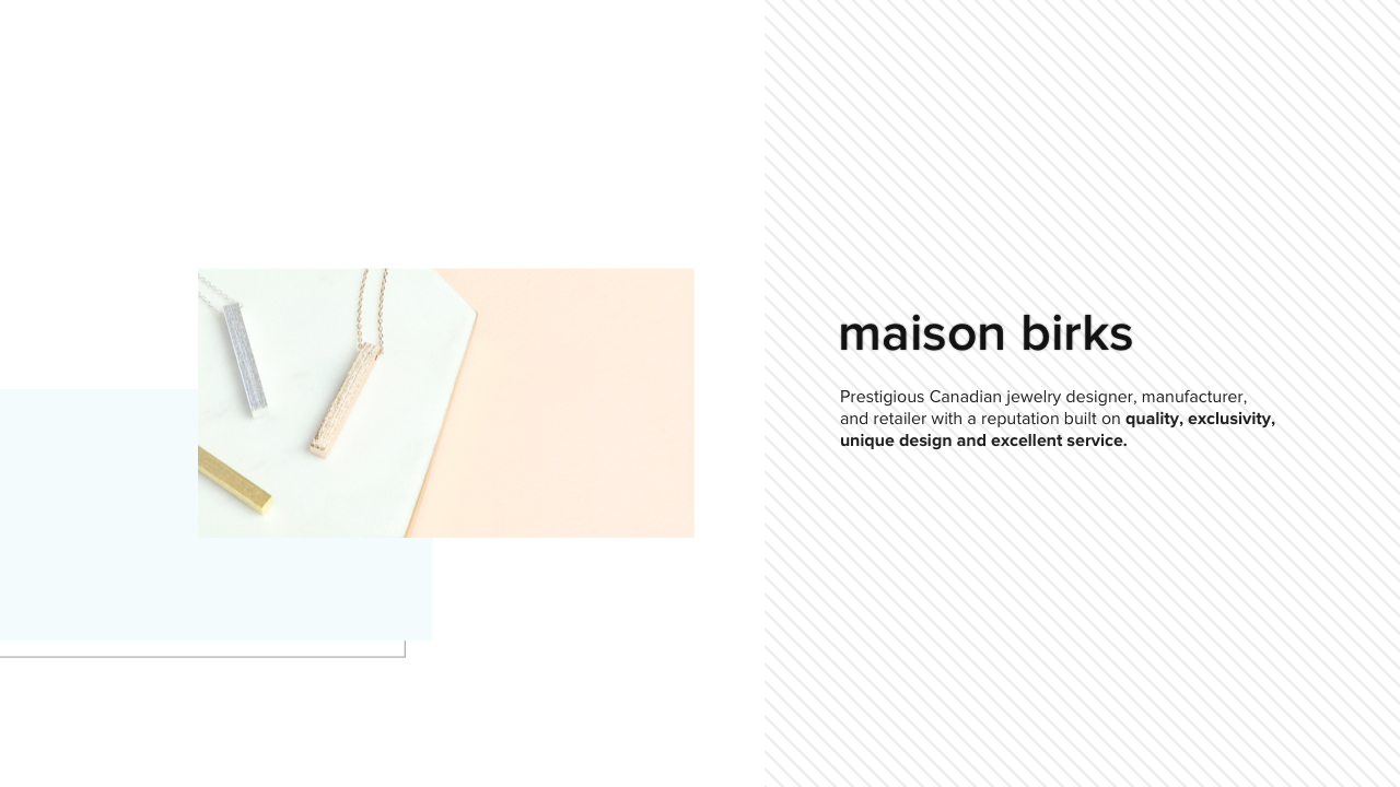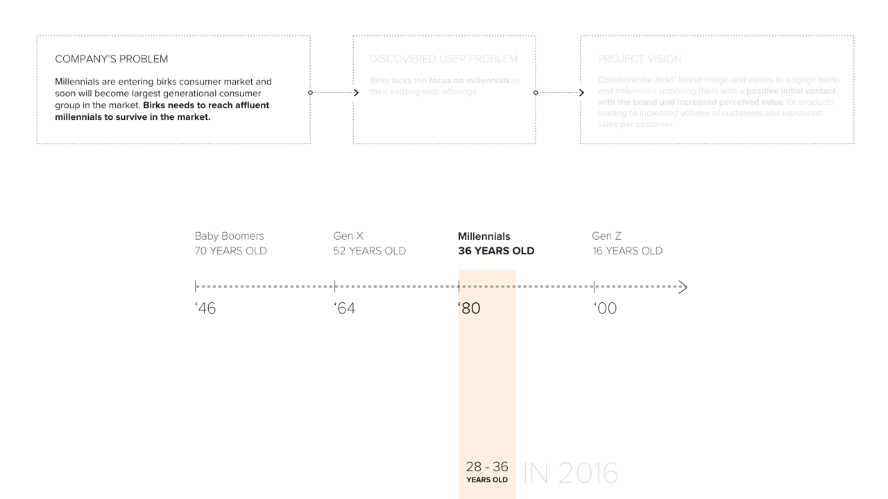 A redesigned web and shopping experience featuring social selling for back-end, affluent millennials in order for them to connect with Birk’s brand and product values. The end goal is to increase perceived value of Birks’ brand/products and establish a more sustainable market for the future, such that Birks is not left behind during the jewelry industry’s massive market shift.